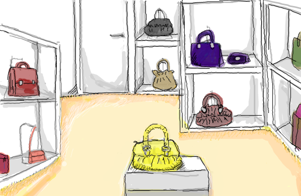 ブランドものの路面店って本当に豪華なんだねぇ。床はふかふかしてるし、お兄さんはパリッとしてカッコイイし、お姉さんは若くて細くて綺麗。