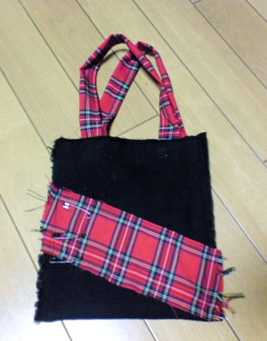 思い切りパンキッシュに裁ちっ放しにして安全ピンとか付けてみました。